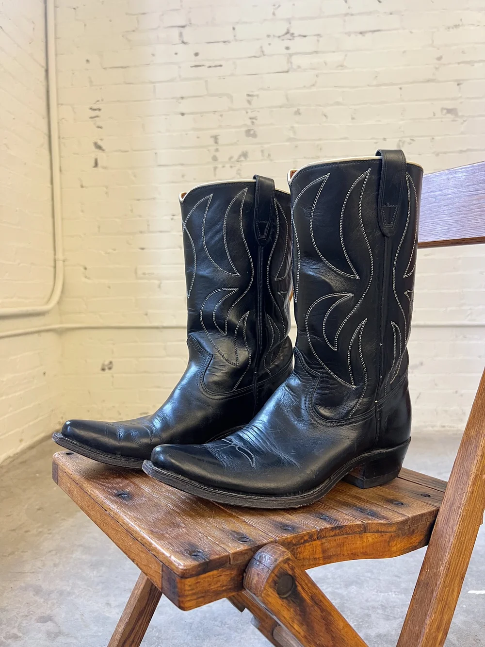 50s 60s Black Leather Western Boots Size 10 May s Place Be