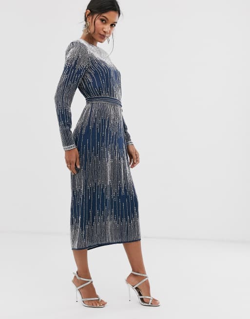 ASOS EDITION beaded fringe and sequin bodycon midi dress in black