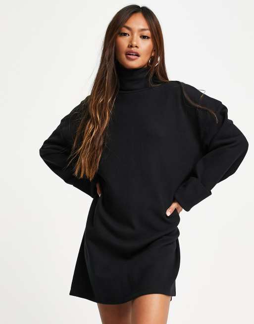 ASOS DESIGN supersoft turned cuff roll neck mini jumper dress in black BLACK