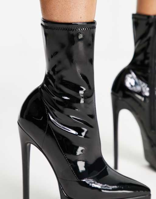 Asos black patent ankle boots clearance, ASOS DESIGN Electrify heeled platform sock boots in black patent clearance