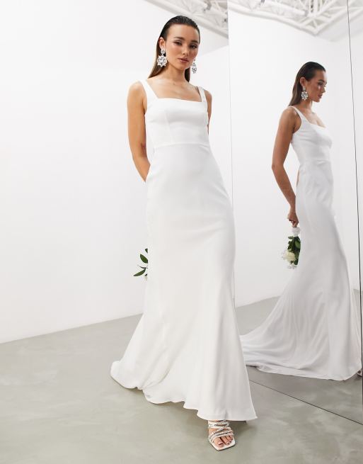 ASOS DESIGN Layne satin square neck wedding dress with train in