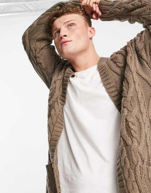 ASOS DESIGN heavyweight cable knit cardigan in putty ASOS