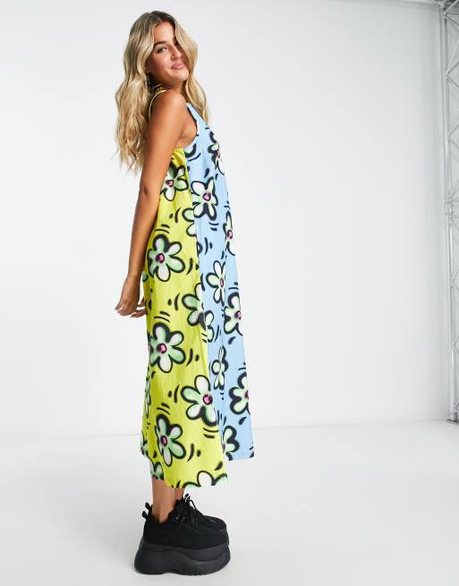 COLLUSION twill sleeveless floral printed midi dress in multi