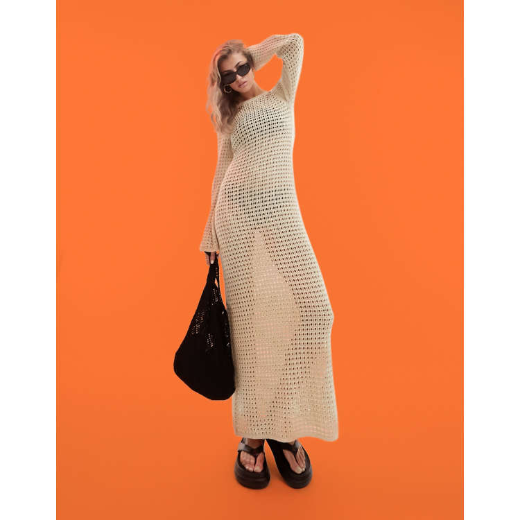 ASOS DESIGN crochet maxi dress with open back detail in cream
