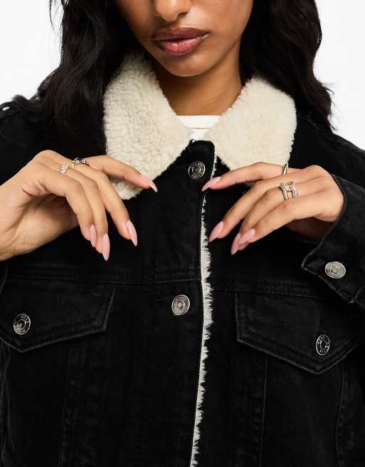 Asos design borg lined denim jacket in black clearance, ASOS DESIGN borg collar denim jacket in washed black ASOS clearance