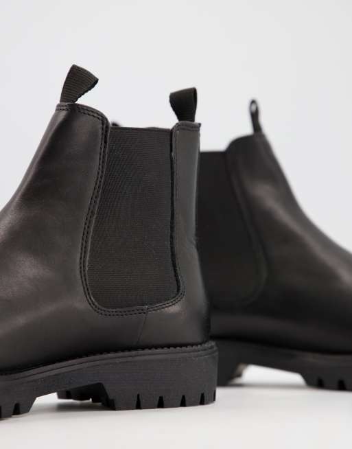 Asos design chelsea boots in black leather with chunky sole clearance, ASOS DESIGN chelsea boot in black leather clearance