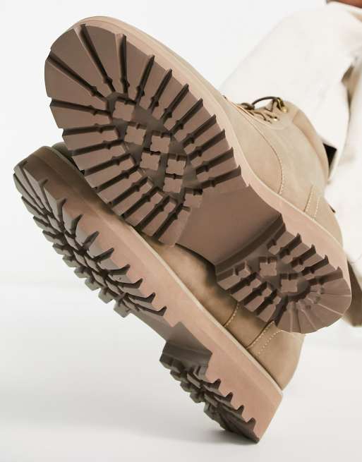 Asos design elm chunky lace up boots clearance, ASOS DESIGN chunky lace up boots with padded collar in stone faux leather clearance