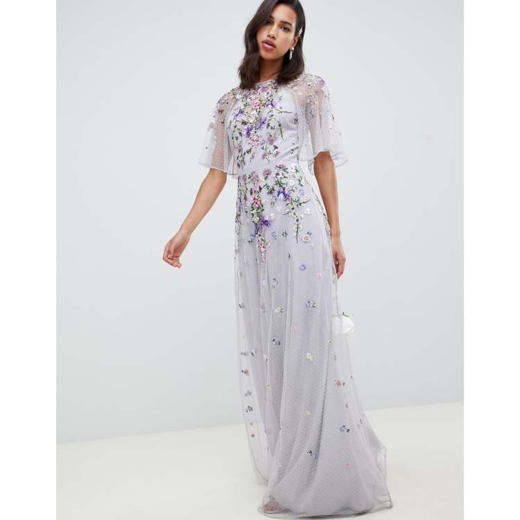 - asos design floral embroidered dobby mesh flutter sleeve maxi dress