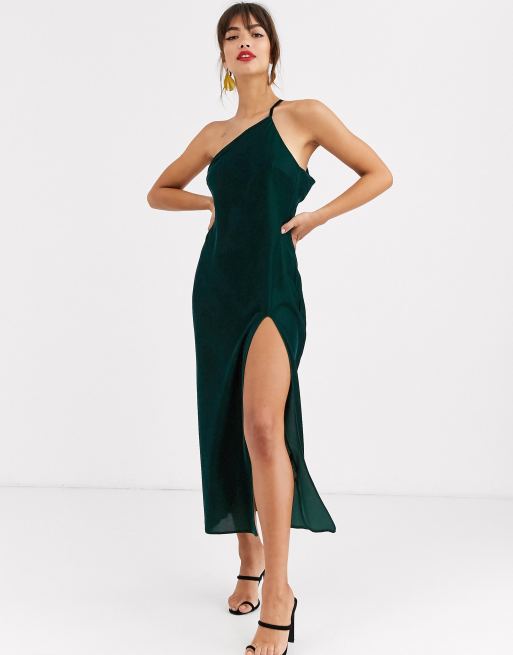 Asos design one shoulder midaxi dress in satin with drape back clearance, ASOS DESIGN one shoulder midaxi dress in velvet with drape back clearance