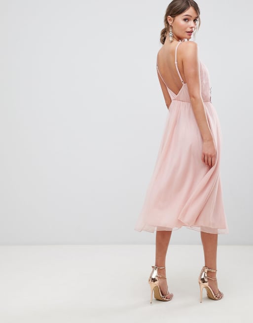ASOS DESIGN Tulle Midi Dress with Applique Trim