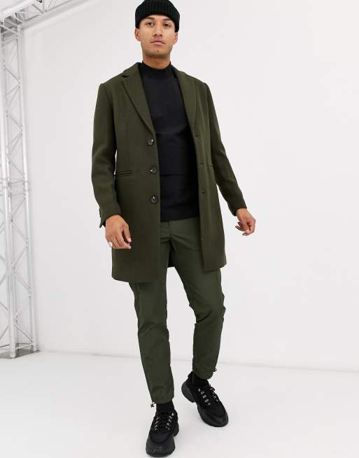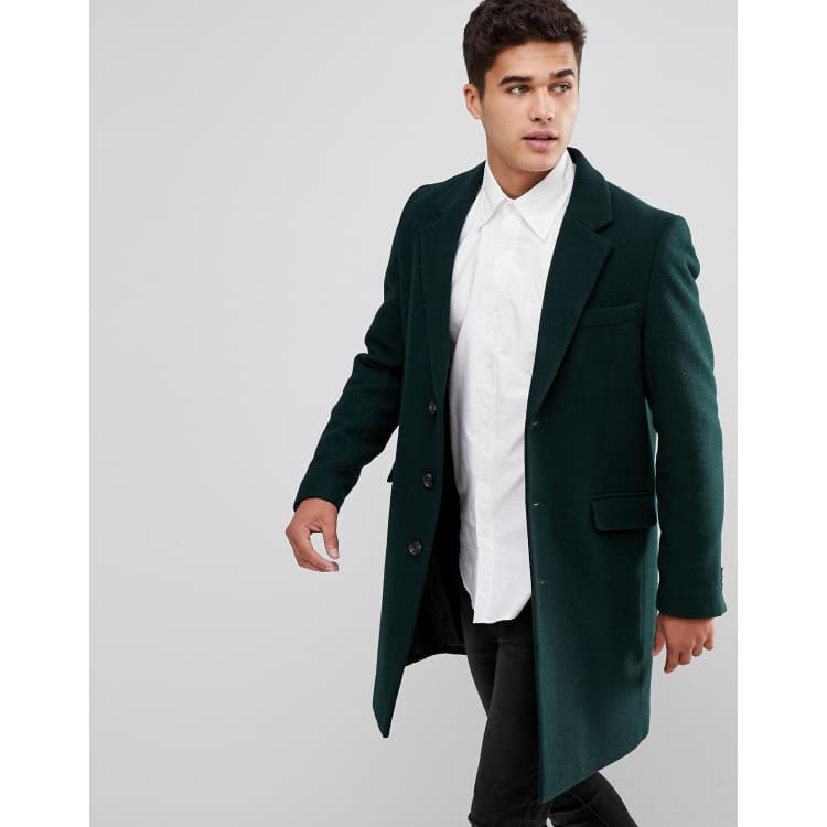 ASOS DESIGN wool mix overcoat in bottle green ASOS