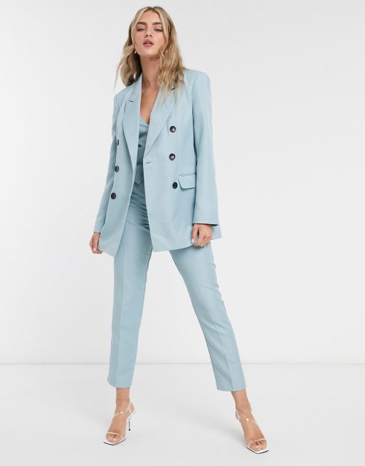 ASOS DESIGN double breasted slim dad 3 piece suit blazer in chalky blue