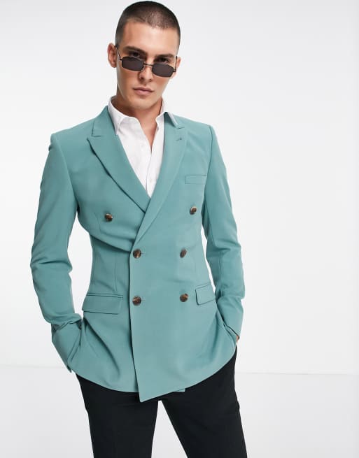 Asos double breasted suit clearance, ASOS DESIGN super skinny double breasted suit jacket in sage green clearance