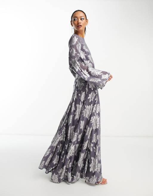 Asos gray dress clearance, ASOS DESIGN metallic long sleeve midi dress with frill cuffs in clearance