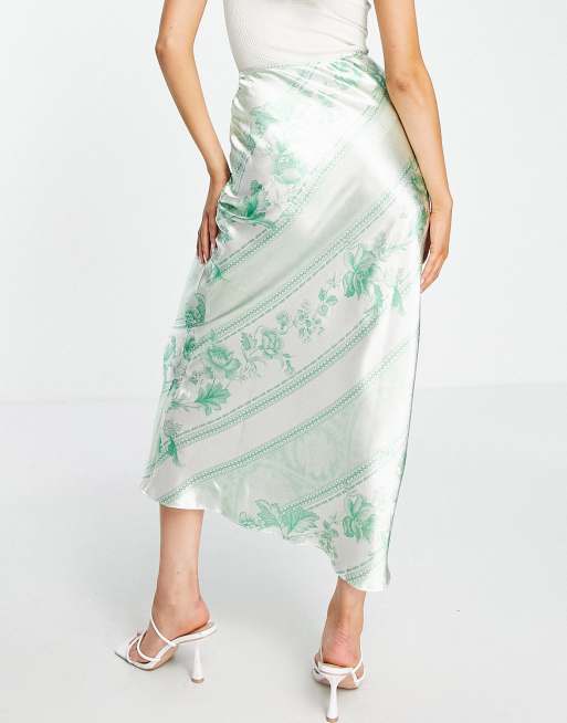 Asos green maxi skirt clearance, ASOS DESIGN satin bias maxi skirt in green blue graphic print ASOS clearance