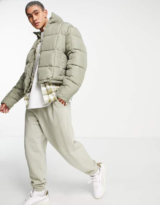 Asos green puffer jacket clearance, ASOS DESIGN puffer jacket in sage green clearance