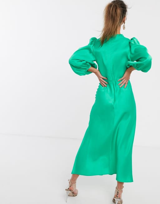 Asos green satin dress clearance, ASOS DESIGN bias midi dress with puff sleeves in satin clearance