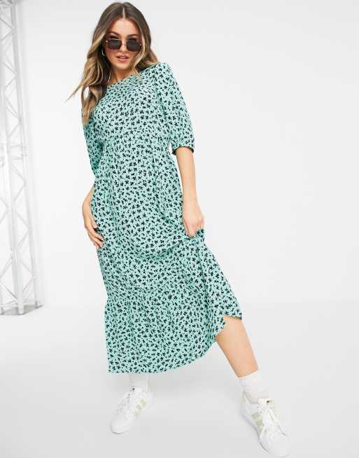 ASOS DESIGN chuck on smock midi dress in bottle green spot