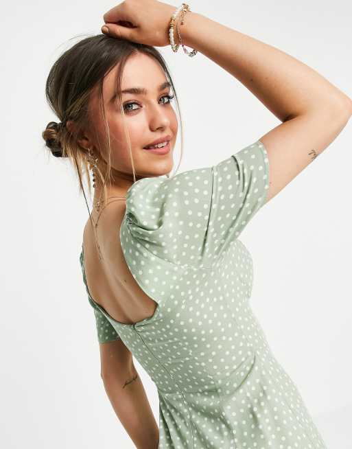 Asos green spotty dress clearance, ASOS DESIGN cupped maxi dress with splits in sage green spot print clearance