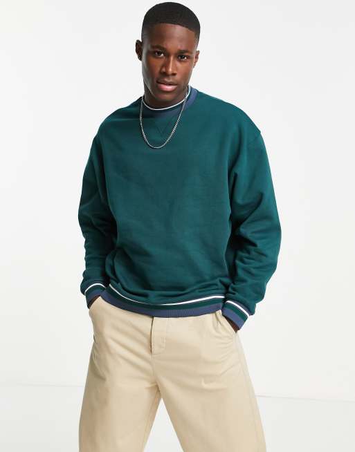 ASOS DESIGN oversized sweatshirt with tipping in forest green