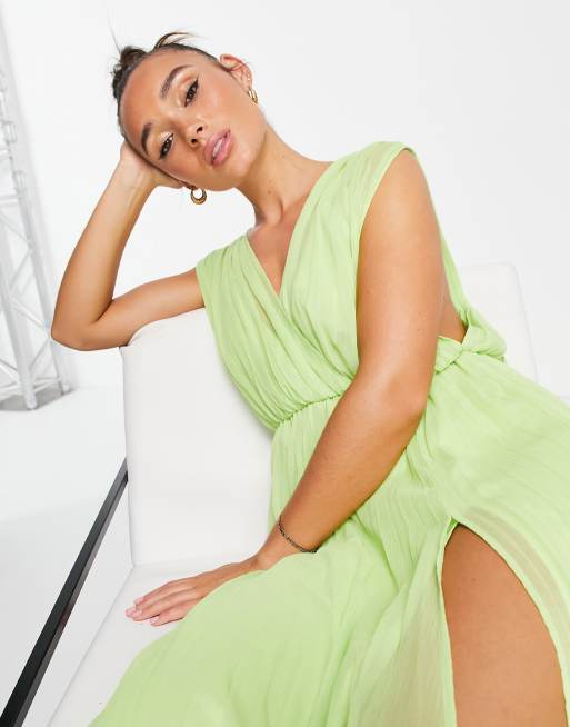 Asos green wrap dress clearance, ASOS DESIGN Curve bias cut satin wrap dress with tie waist in forest green clearance