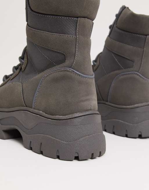 Asos grey boots clearance, ASOS DESIGN lace up boots in grey faux suede on chunky sole clearance