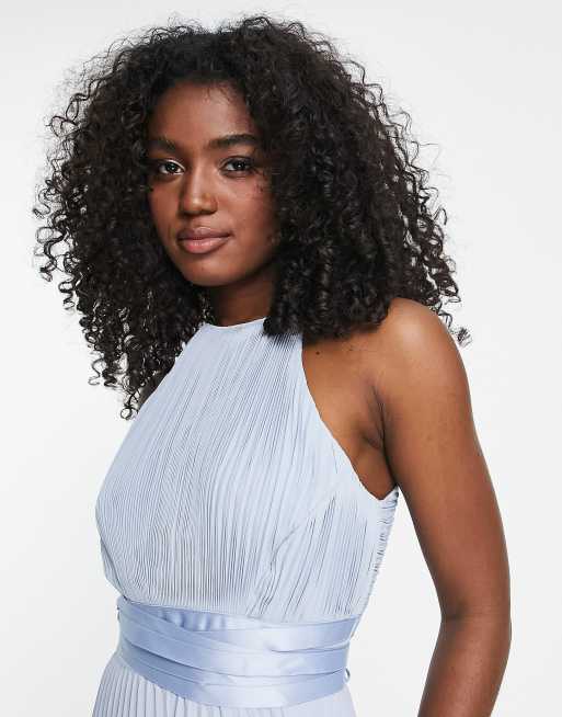 Asos grey pleated dress clearance, ASOS DESIGN Bridesmaid pleated pinny maxi dress with satin wrap clearance