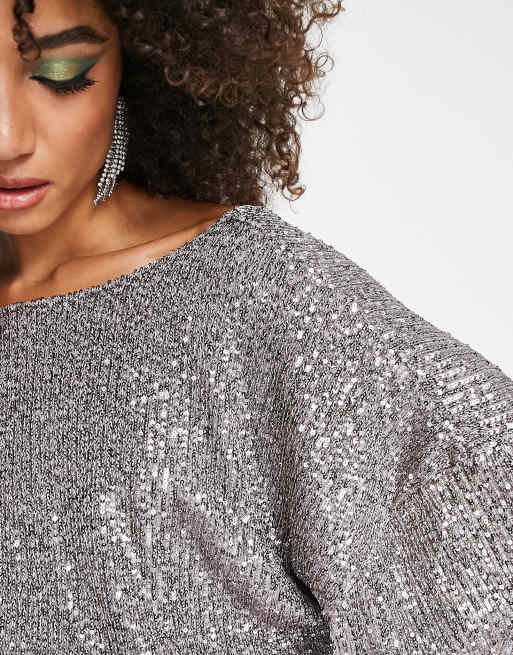 ASOS DESIGN oversized sequin mini dress with belt in charcoal