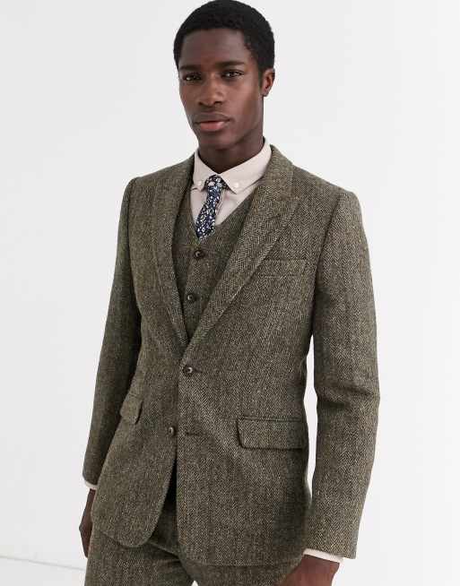 Asos harris tweed jacket clearance, ASOS DESIGN slim suit jacket in 100 wool Harris Tweed in brown herringbone clearance
