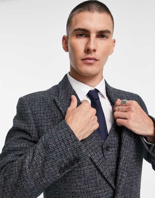 Asos harris tweed suit clearance, ASOS DESIGN slim suit jacket in 100 wool Harris Tweed with blue micro check clearance