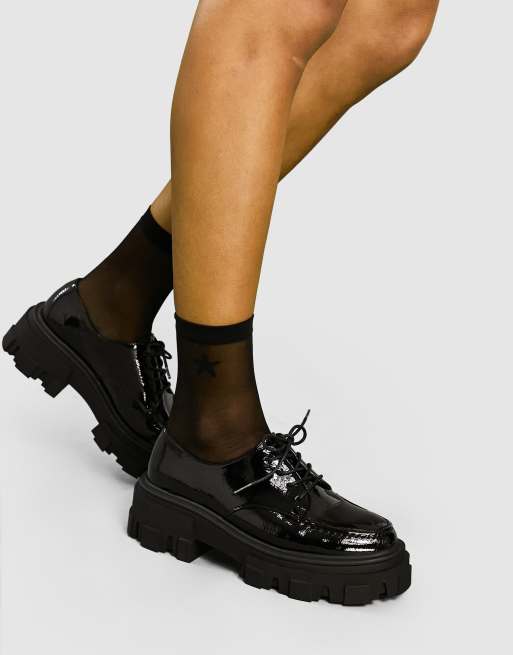 ASOS DESIGN Machine chunky lace up flat shoes in black