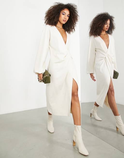 ASOS EDITION textured jersey slouchy midi dress with drape front in cream