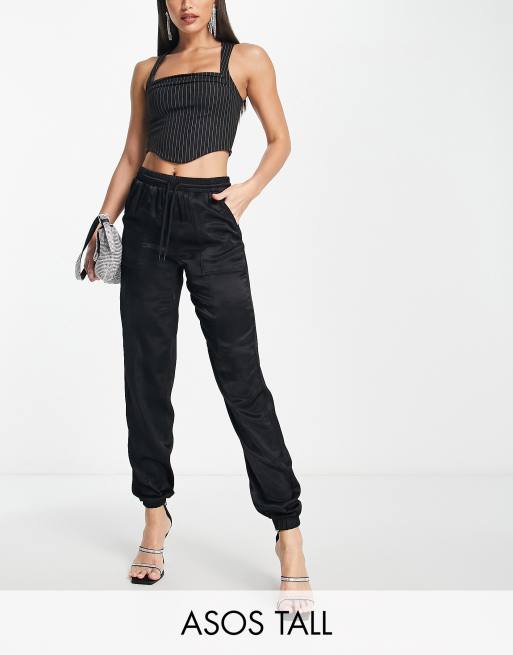 ASOS DESIGN Tall satin seam detail sweatpants in black ASOS