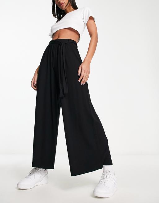 ASOS DESIGN Jupe culotte ample avec ceinture nou e la taille Noir