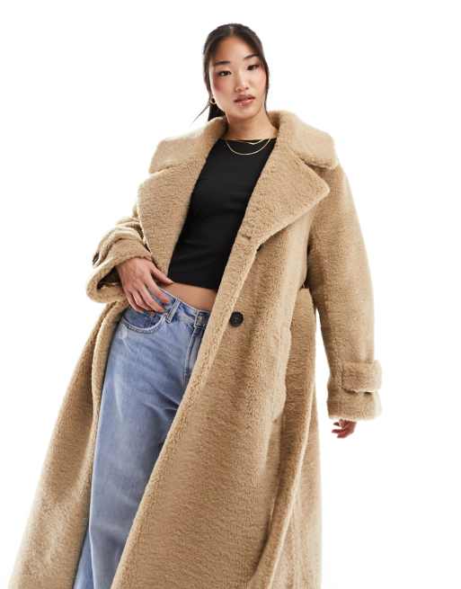 Asos long teddy coat clearance, ASOS DESIGN longline borg trench coat in oat clearance