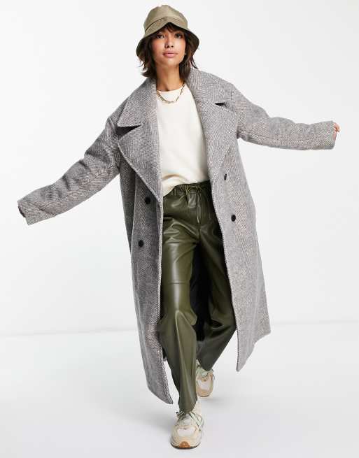 Asos maxi coat clearance, ASOS DESIGN smart herringbone oversized maxi coat in grey clearance