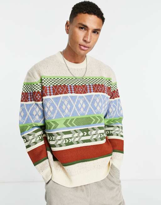 Asos mens xmas jumpers clearance, ASOS DESIGN knitted Christmas jumper with colour block fairisle clearance