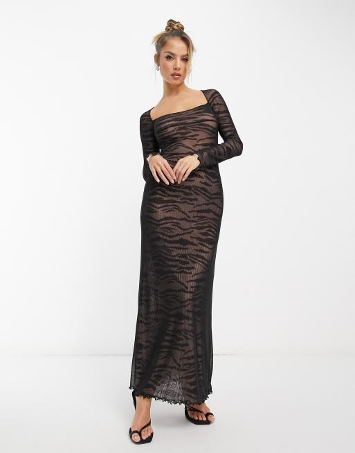 ASOS DESIGN mesh long sleeve midi dress with lattice Back in zebra print