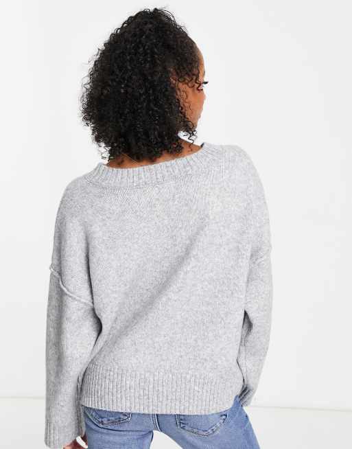 ASOS DESIGN Petite chunky v neck jumper in grey ASOS