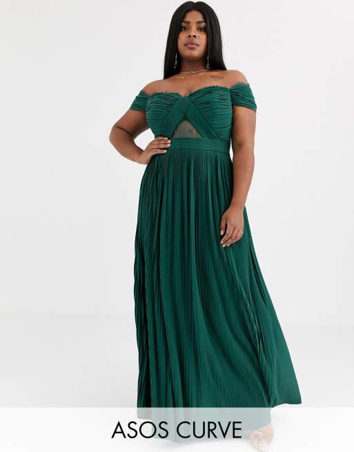 ASOS DESIGN Curve lace and pleat bardot maxi dress