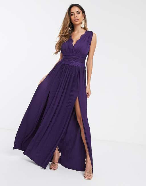 Asos purple maxi dress clearance, ASOS DESIGN Fuller Bust premium lace insert pleated maxi dress clearance