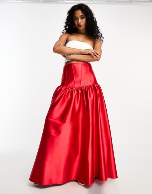 Asos red maxi skirt clearance, Vesper thigh split maxi skirt two piece in red clearance