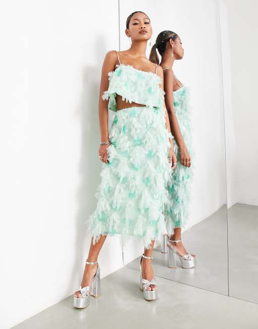 ASOS EDITION paillette sequin midi skirt with faux feather hem