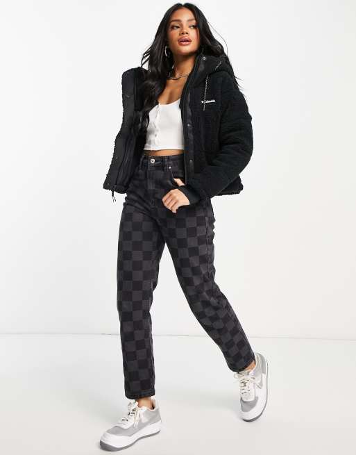 Columbia Lodge cropped sherpa jacket in black Exclusive at ASOS
