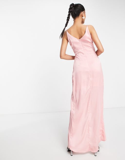 Liquorish Bridesmaid cami strap satin wrap maxi dress in soft rose pink