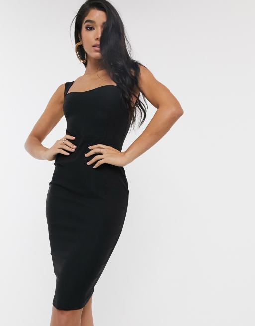 Vesper sweetheart frill sleeve bodycon thigh split midi dress in