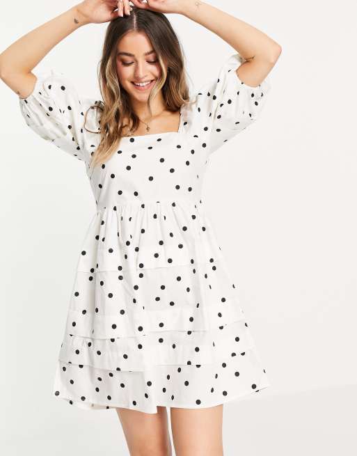 Influence tiered poplin midi dress in white polka dot