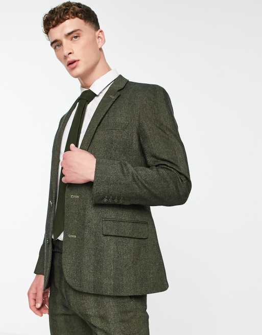 Asos wool jacket clearance, ASOS DESIGN skinny wool mix suit jacket in green herringbone clearance