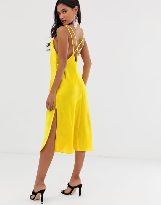 Asos yellow satin dress clearance, ASOS DESIGN cami midi slip dress in high shine satin with strappy back clearance
