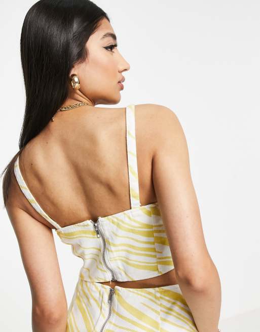 New Look denim corset top in yellow zebra print part of a set ASOS